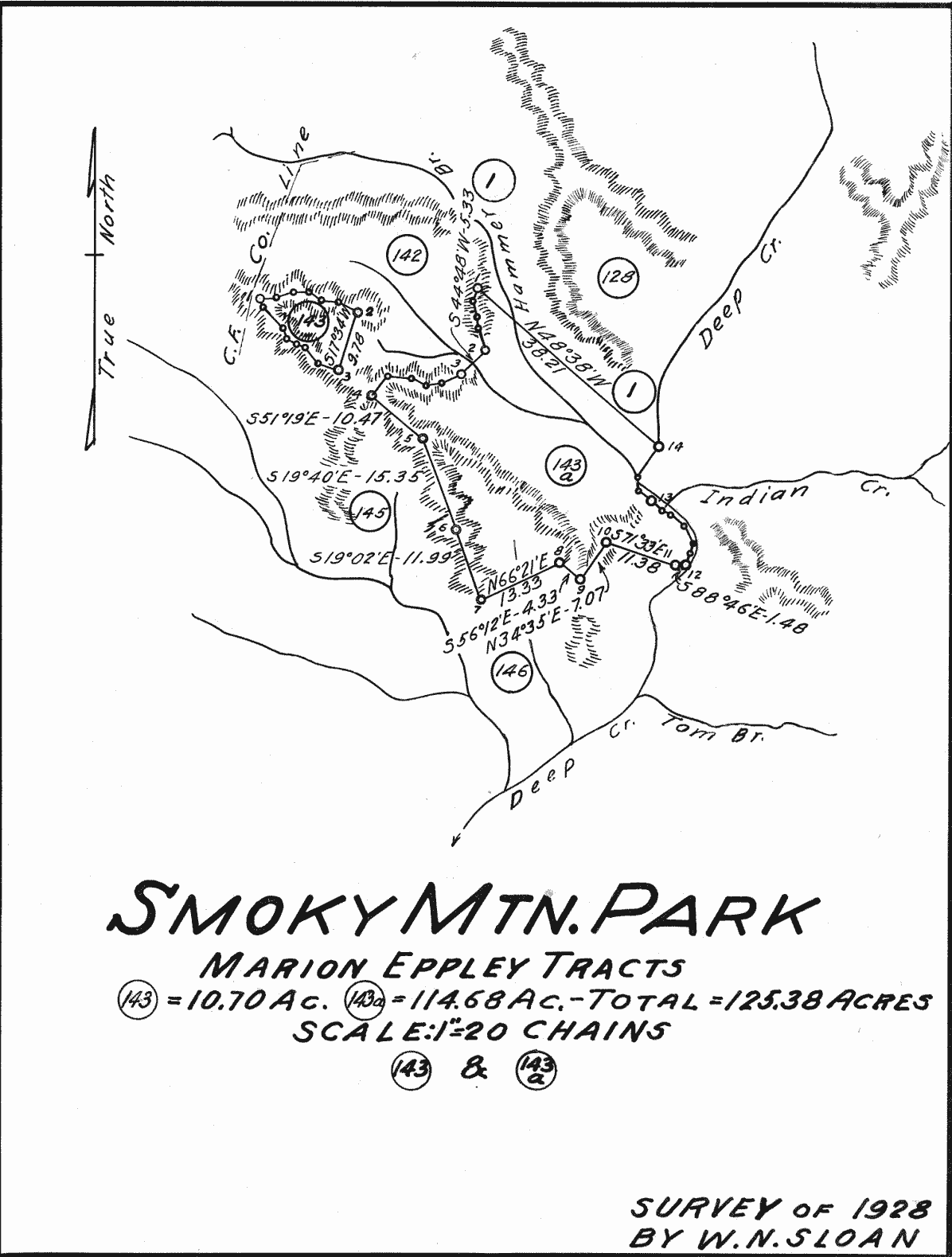 | Tract also included the upper portion of Shytles Branch, a small branch which runs alongside the Deep Creek Horse Trail between Juney Whank and Hammer Branches. For price, see Tract 143 |