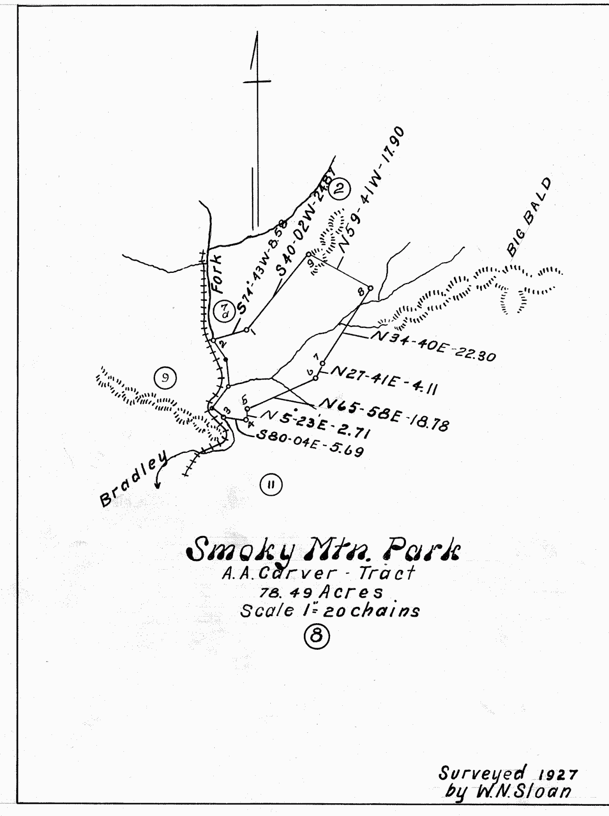 | According to NC Park Commission records, Aden & Martha Carver would receive $1,700 and their son james Mack & wife Gertie would receive $300. Aden & Martha Carver had sold ~ 6 acres to Mack and Gertie in 1927 (deed 53-570) adjacent to the Julius Carver tract 9. |