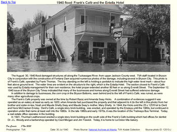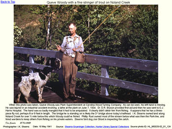 | Bryson City: 1940 Flood, Frank's Cafe | Noland: Queve Woody fishing | Noland: Queve Woody,stringer of trout |